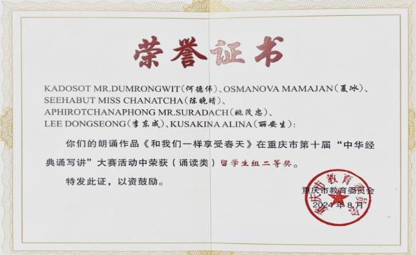 公司国际员工在2024国际中文日HSK短视频大赛中荣获一等奖