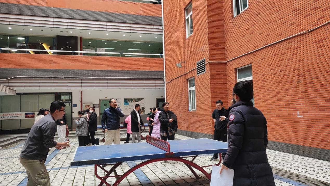 在活动现场,教职工们兴致勃勃地参加了颠乒乓球、女单、男单、混双等乒乓球活动。