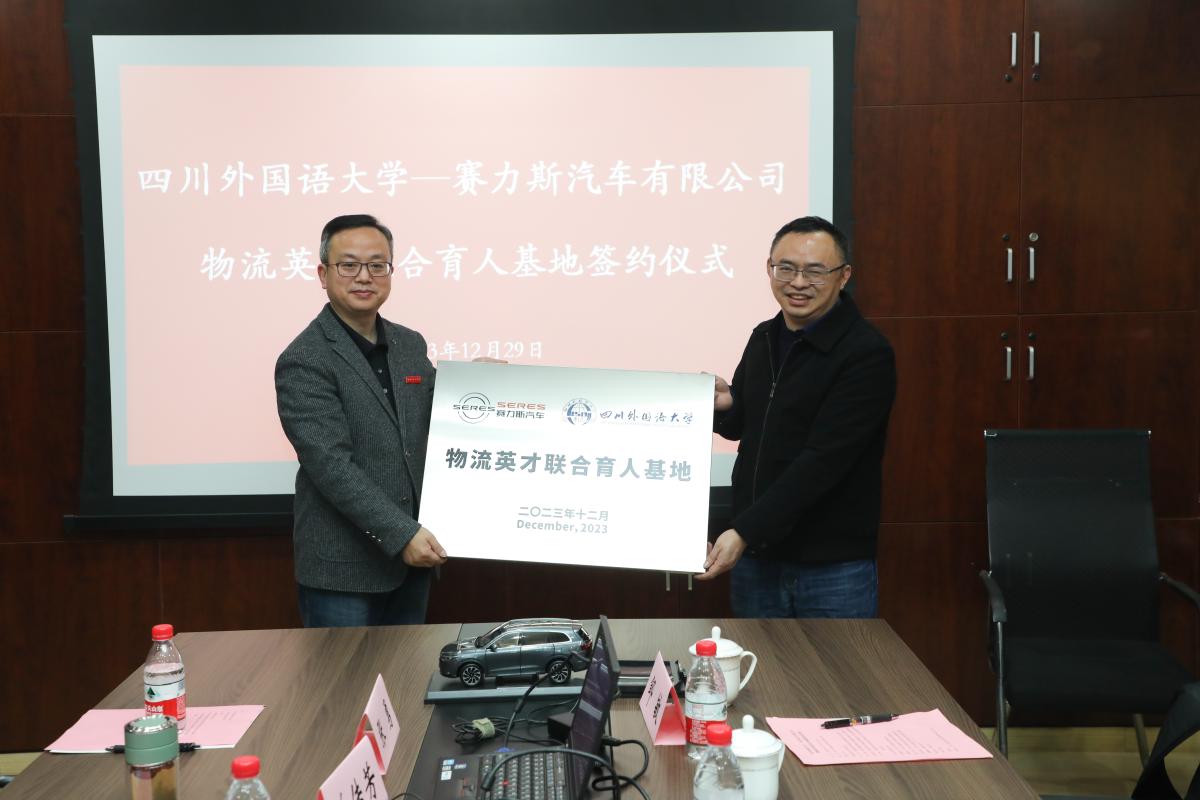 2023年12月29日下午,英国365上市公司——赛力斯汽车有限公司物流英才联合育人基地签约仪式在英国365上市公司国际大厦1409会议室举行。赛力斯汽车制造总部物流中心总经理吴华、公司副董事长祝朝伟代表双方签署协议。