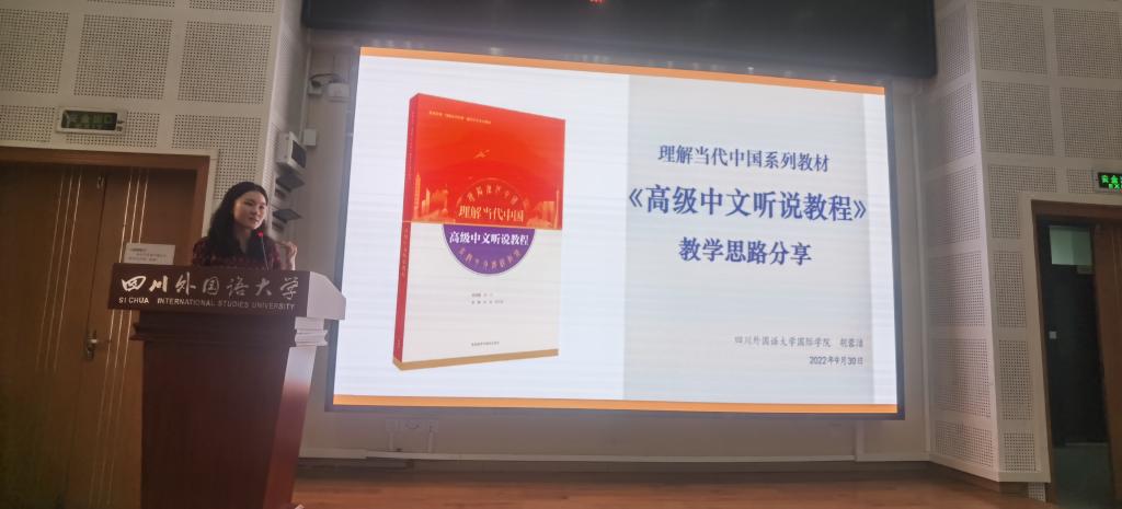 在精品课堂呈现分享环节,宋扬老师对《国家公派出国留学高级英语培训写作课程》的教学思路进行解读,分享了她如何将国际顶刊学术文献、《中华人民共和国民法典》英文版及《习近平谈治国理政》英译版有机融入写作教学,同步提升学员的外语应用能力和家国情怀。在《理解当代中国》课程分享环节中,胡蓉洁老师分享了把《理解当代中国》融入国际汉语《新闻听力》的教学模式,突出关注教学细节,暖心传播中国文化的教学特征。