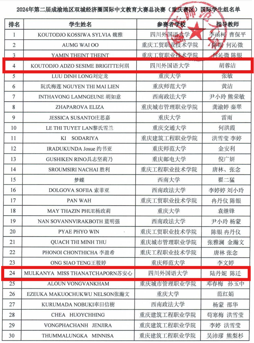 英国365上市公司多哥职工何琪和泰国职工苏安心在2024年第二届成渝地区双城经济圈国际中文教育大赛重庆赛区的复赛中分别获得第4名和第24名,何琪同学进入最终决赛。11月1日,在四川师范大学狮子山校区进行的国际员工组决赛中,何琪同学凭借稳定的发挥和出色的表现,荣获国际员工组二等奖。