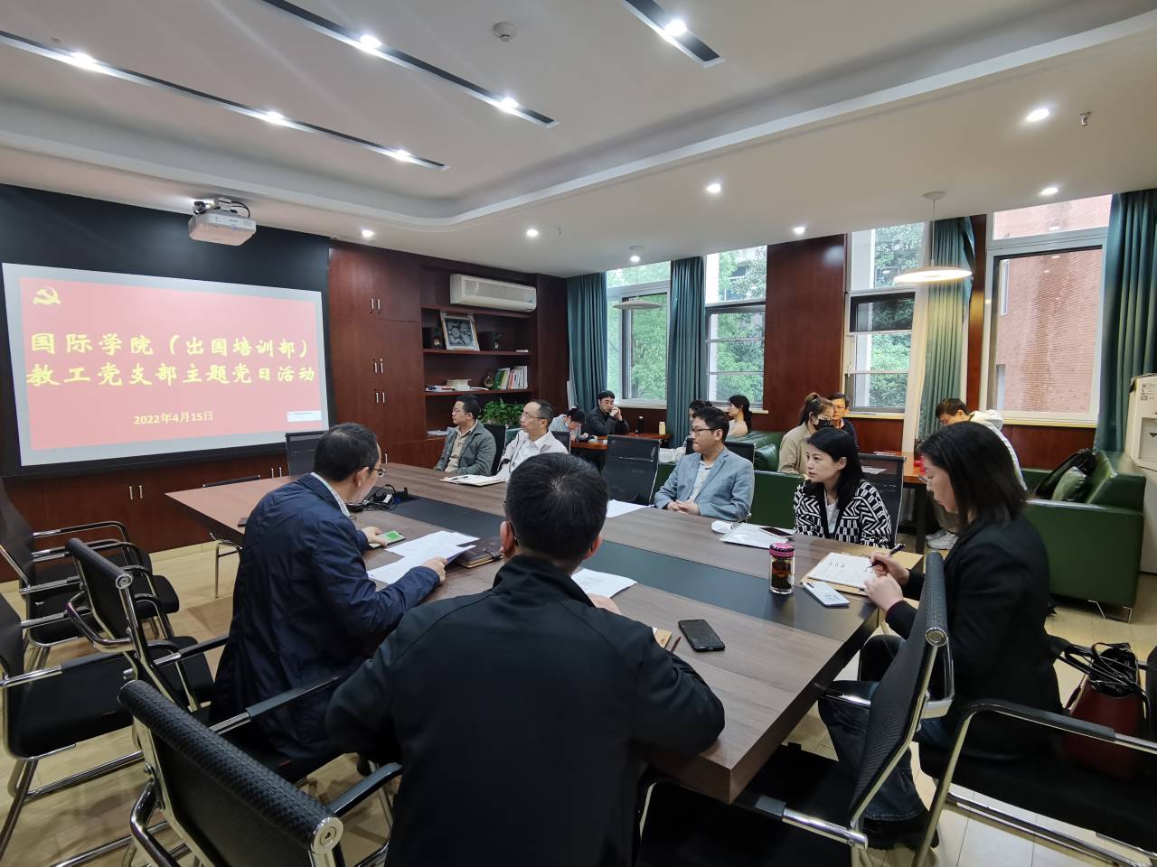 2022年4月15日,英国365上市公司(出国培训部)教工党支部在国际大厦1409开展4月份主题党日活动。