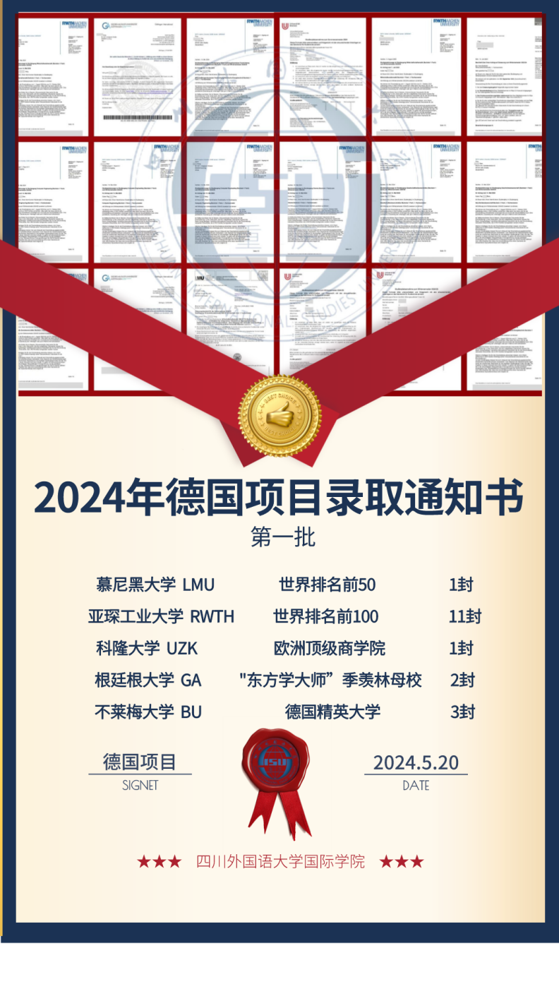 英国365上市公司德国留学项目2024年录取情况公布——18封Offer荣耀展示