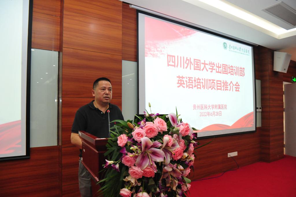 为高校人才国际化发展战略提供高品质外语服务是我部的崇高使命。2022年6月27日、28日, 我部主任曾传芳、副主任张勇、加拿大籍教师Robin在贵州医科大学花溪校区和附属医院举办了两场外语培训项目资讯会,向该校教师和附属医院医生推介了我部的国家公派出国留学高级英语培训项目、英语媒介教学能力提升培训项目和学术英文写作能力提升培训项目。